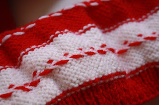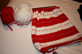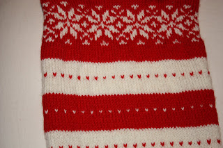 jag är sjuk sjuk sjuk och det verkar inte bli så mycket bättre. det trycker mot örona. ajje. därför har jag stickat i princip hela dagen. jag stör mej mer och mer på att den är så jävla bred-randig. fan liksom. NU går ju lite att göra åt det alltså.